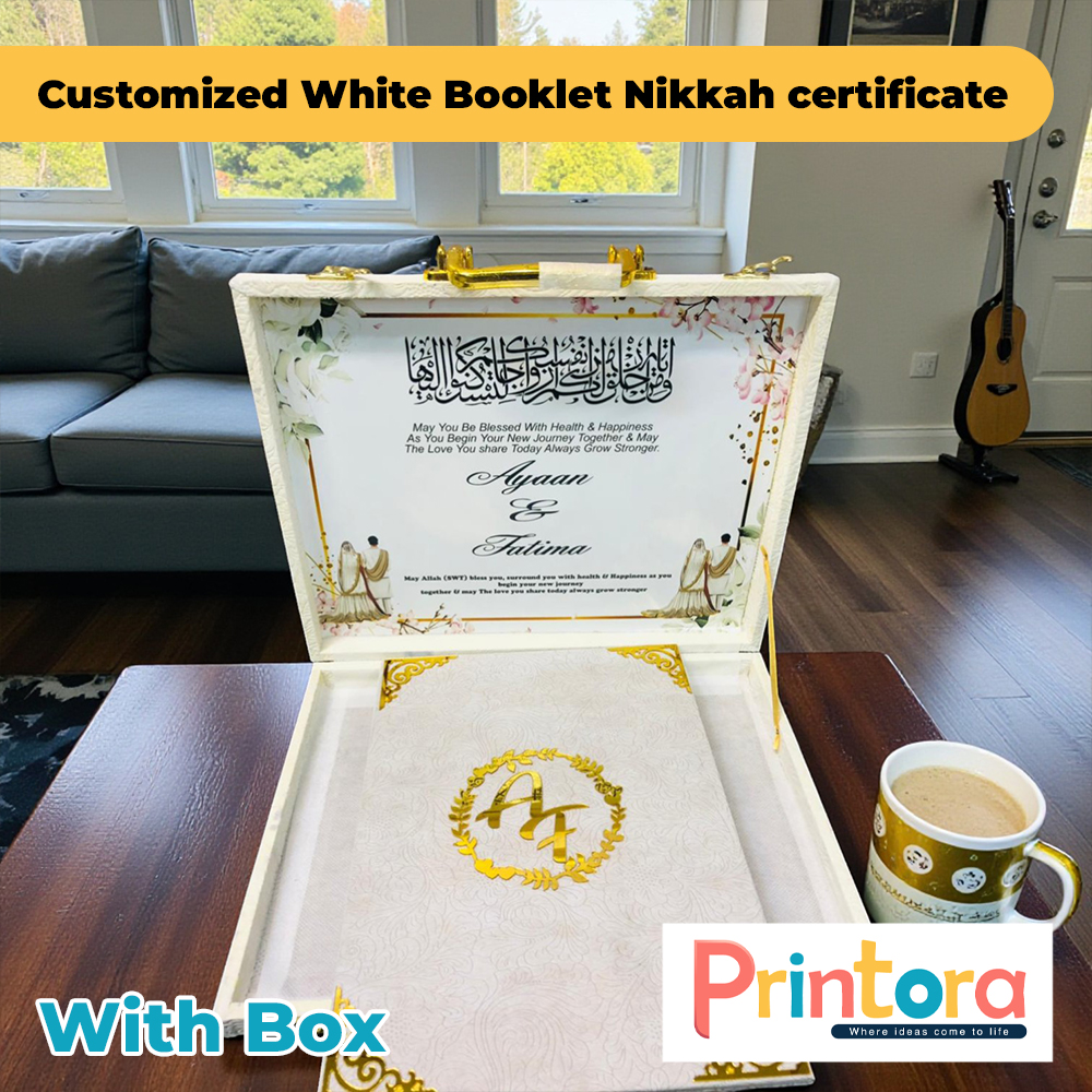 White Booklet Nikkah Certificate with Box – Elegant Wedding Keepsake